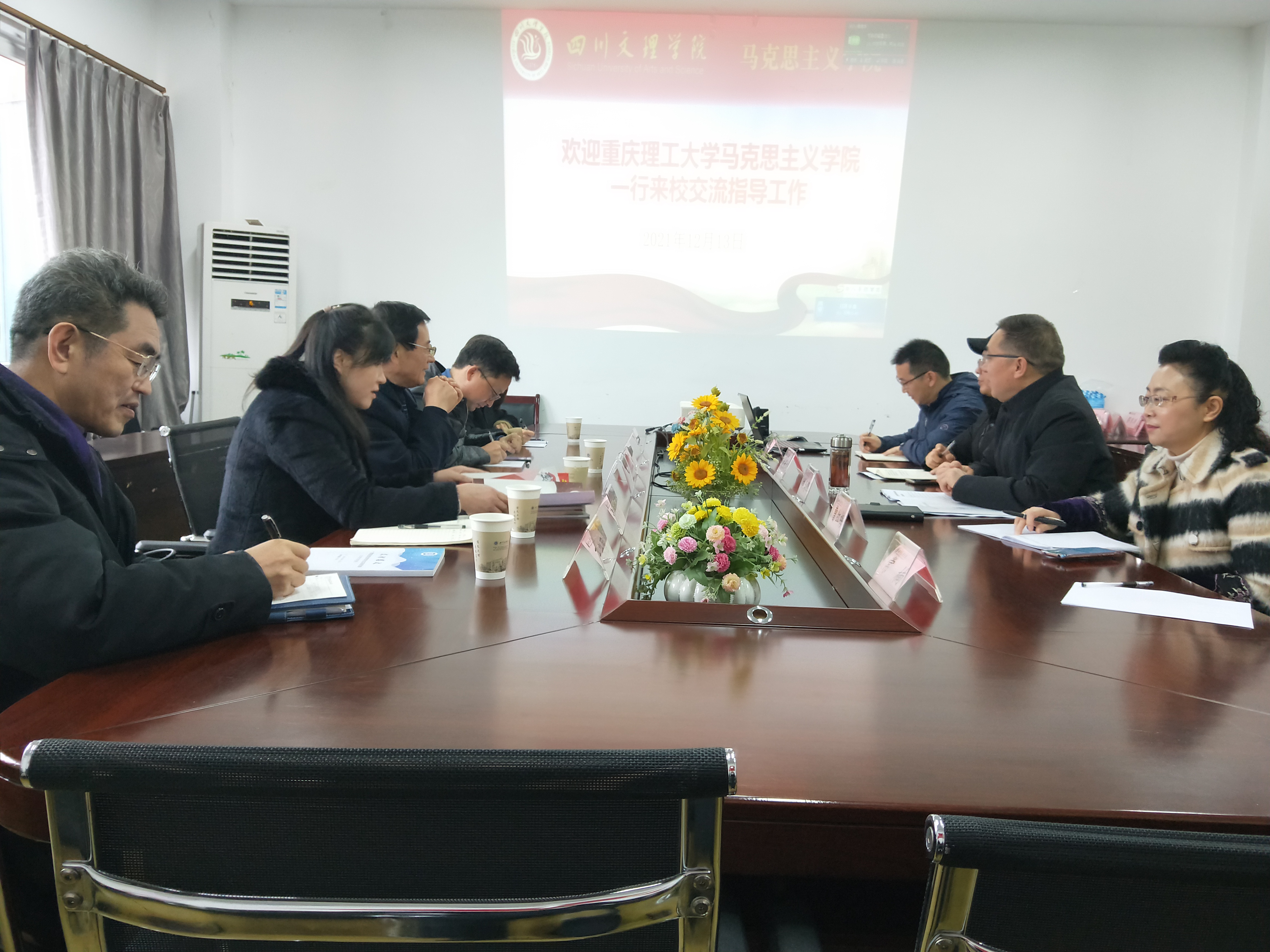 2021年12月13日上午,重庆理工大学taptap点点足彩院长徐茂华、党委书记黄旭、副院长谭莉莉、办公室副主任张洁琳以及王兴国老师一行5人来我校taptap点点足彩开展交流指导,taptap点点足彩党总支书记刘春辉、政法学院院长刘长江、党政办主任常楠、马克思主义基本原理教研室主任曹红梅、形势与政策教研室主任梁云参加了座谈会。