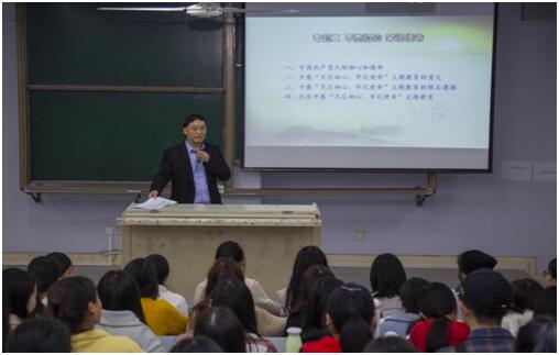 11月4日晚,学校党委书记王成端教授在博文楼328教室为外国语学院学子讲授题为“不忘初心,牢记使命”的形势与政策课。taptap点点足彩院长刘长江、外国语学院党总支书记王义文、副院长刘彦仕以及辅导员、学生党员、2018级部分学生到场聆听。