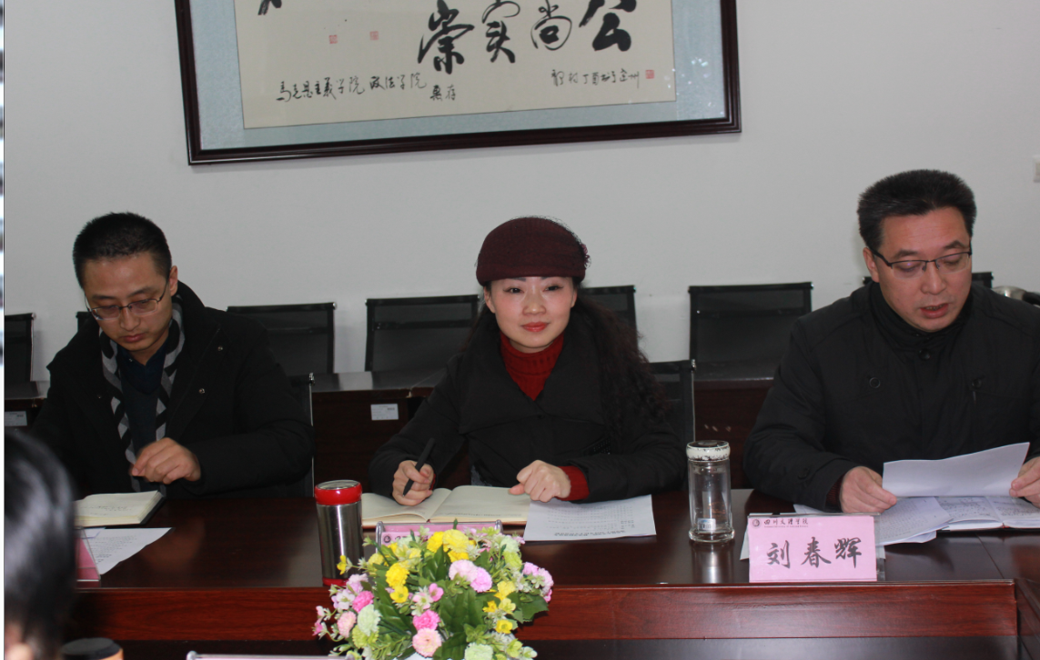 最后刘春辉作表态发言,他表示学院班子将牢固树立“四个意识”,坚定“四个自信”,提高政治站位,做到“四个服从”。一是加强习近平新时代中国特色社会主义思想学习,学以致用,要贯彻落实好中央、省委和学校党委决策部署。二是勇于担当作为,善于攻坚克难,认真探索党建、管理、教学、学生工作的规律。三是党政一班人,继续团结协作,努力工作,带领全院师生一道推动各项工作大进步、大发展、大提升。