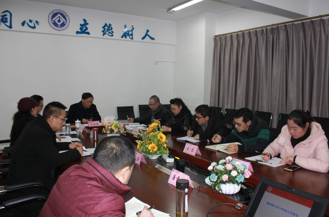 1月7日下午,taptap点点足彩、政法学院党总支在一教楼611会议室召开领导班子2018年民主生活会。党委书记王成端、督导成员秦静莅会指导,班子成员王秀珍院长、吴辉兵副书记参加会议,党政办、学工办、教研室主任列席会议,总支书记刘春辉主持会议。