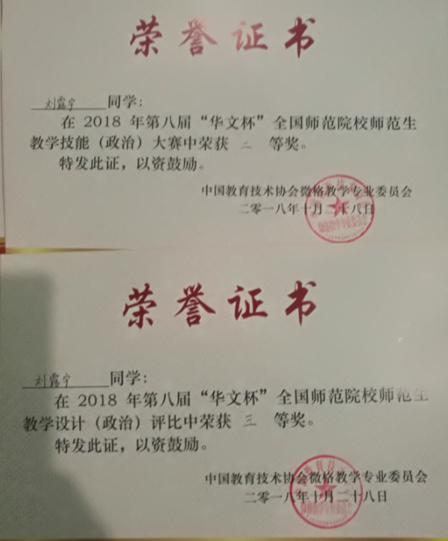 10月26日至28日,由中国教育技术协会微格教学专业委员会主办的2018年第八届“华文杯”全国师范院校师范生教学技能(政治)大赛决赛在南京晓庄学院举行。taptap学生刘露宇获得教学技能大赛二等奖,教学设计评比三等奖。