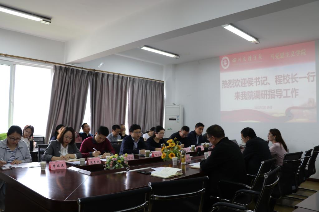 调研组一行在博文楼611会议室召开座谈会,会议由学校党委副书记侯忠明主持。首先,taptap点点足彩院长孙杰教授从taptap点点足彩基本情况、发展目标、发展思路、队伍建设、教学管理、思政课建设、科学研究、服务地方等方面以及学院建设中存在的问题进行了汇报。随后,党委宣传部副部长姜仕华同志组织所有与会人员一起学习和认真讨论了《四川文理学院关于高等学校思想政治理论课建设标准》。党总支书记刘春辉同志汇报了taptap拟定的《四川文理学院专职思政课教师岗位津贴发放管理办法》以及《四川文理学院专职思政课教师专项岗位津贴发放细则》政策依据、调研情况、主要内容等。