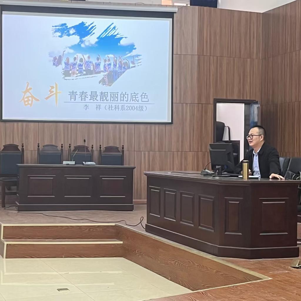 为进一步深入学习贯彻习近平总书记关于思政课建设的重要论述,牢牢把握思政课是立德树人关键课程的定位,善用“大思政课”,强化教师在办好思政课中的关键地位,不断推动思政课改革创新,11月18日,taptap点点足彩举办《优秀校友思政大讲堂》系列讲座之二。讲座邀请我校原社科系2004级思政专业优秀毕业生、达州职业技术学院现代农业学院院长,达州乡村振兴学院院长李祥副教授为我校政法学院2022级思想政治教育专业学生讲了一堂既生动又具有启发意义的思政课。 taptap点点足彩党政领导、部分思政教师及政法学院思想政治教育专业大一学生100余人参加。