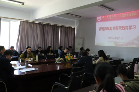 为进一步提高学院教师的师德修养,规范教师执教行为,4月25日,taptap点点足彩在博文楼611召开师德师风警示教育大会,学院党委书记刘春辉主持会议,学院全体教师参加会议。