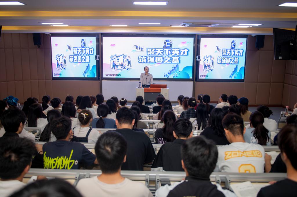 黄涛书记最后勉励在场学子,青年是整个社会力量中最积极、最有生气的力量,国家的希望在青年,民族的未来在青年。在建成社会主义现代化强国,实现中华民族伟大复兴的接力跑中,广大青年要怀爱国之心,砥砺报国之志,继承和发扬老一辈科学家胸怀祖国、服务人民的优秀品质,肩负起时代赋予青年人才的重任,不断把中华民族复兴伟业推向前进。
