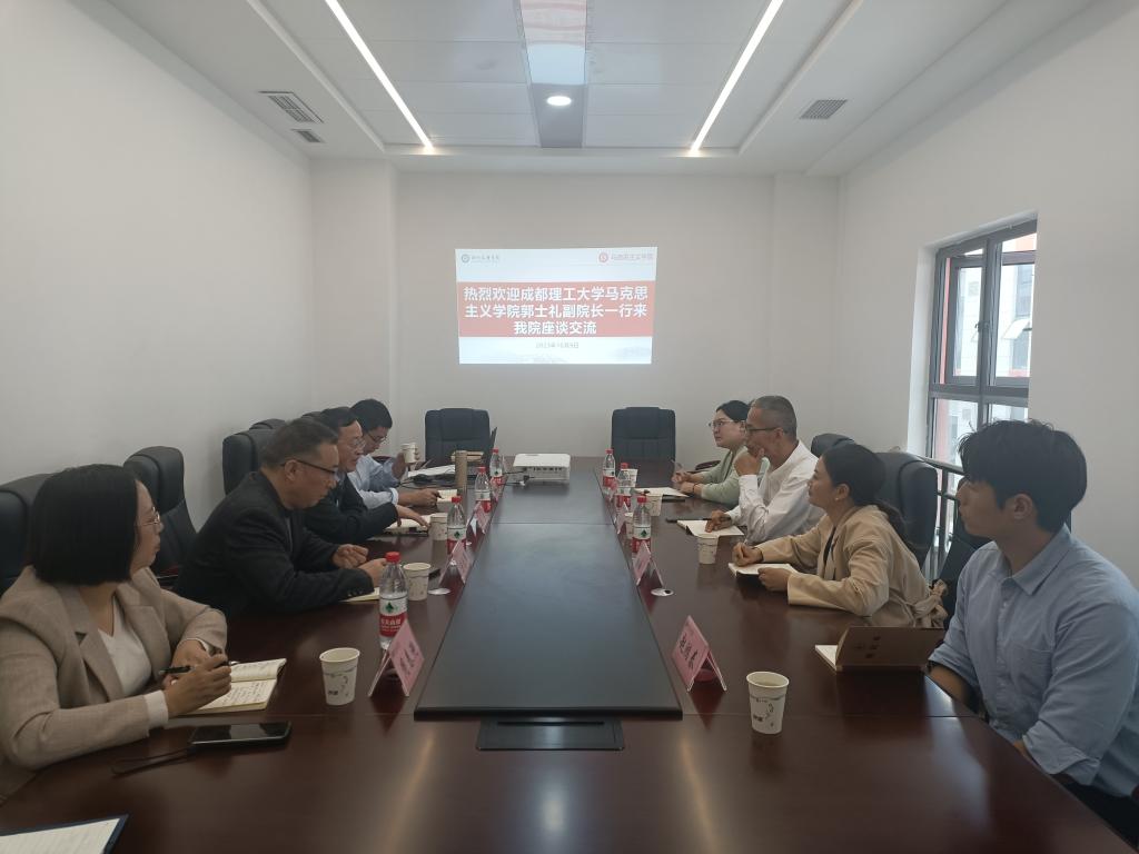郭士礼介绍了成都理工大学taptap点点足彩的基本情况,分享了学院在办学定位与发展目标、守正创新思政课、专业人才培养质量提高以及“田野教学”特色项目的宝贵经验。之后,双方就思政课的教学实践、红色文化育人、兼职硕士研究生导师等话题进行了热烈讨论,深入交换意见。双方表示,今后要继续加强交流合作,互学互鉴。