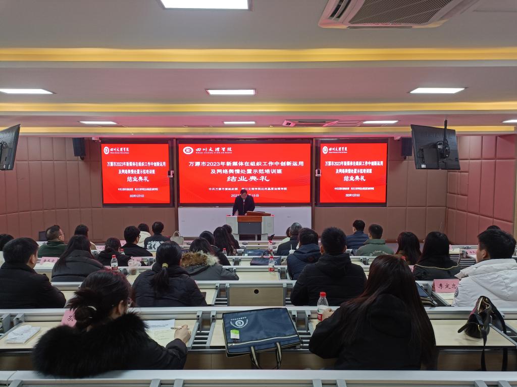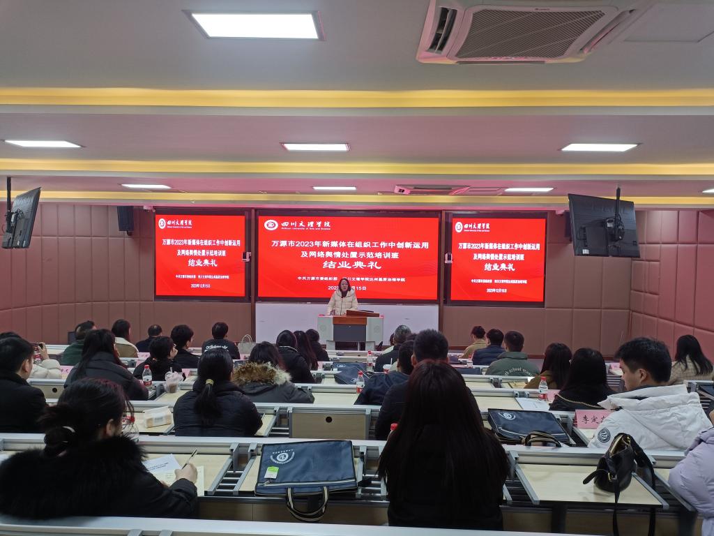 12月15日,万源市2023年新媒体在组织工作中创新运用及网络舆情处置示范培训班结业典礼在四川文理学院顺利举行。四川文理学院taptap点点足彩院长、达州基层治理学院副院长孙杰致辞,四川文理学院taptap点点足彩党委副书记、纪委书记周春滟主持结业典礼。
