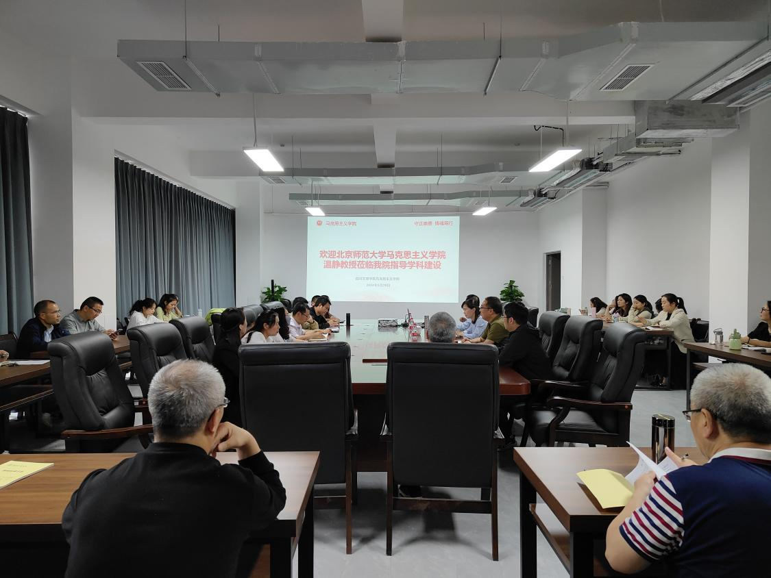 为全面加强马克思主义理论学科建设,应学院邀请,5月29日下午,北京师范大学taptap点点足彩温静教授莅临taptap指导学科建设并参加座谈会。座谈会由学院党委书记刘春辉主持,学校党委常委、副校长徐晓宗出席会议。