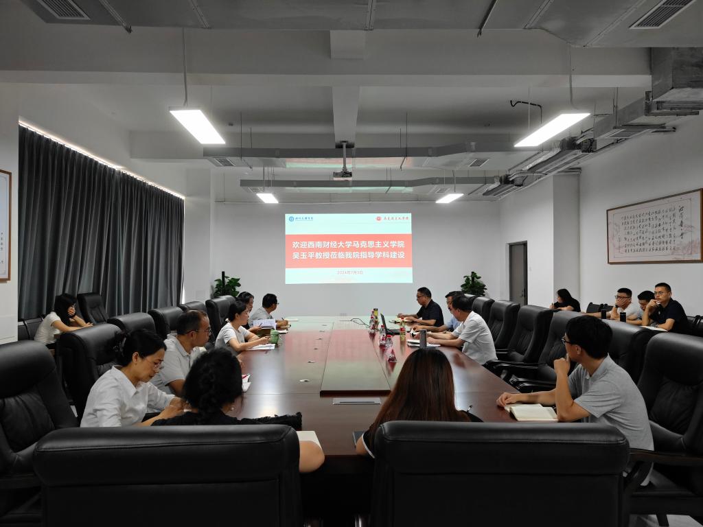 为深入推进马克思主义理论学科建设,提升思政课教学质量,应学院邀请,7月5日下午,西南财经大学taptap点点足彩吴玉平教授莅临taptap指导学科建设并参加座谈会。座谈会由学院院长孙杰教授主持,taptap点点足彩全体教师参加会议。