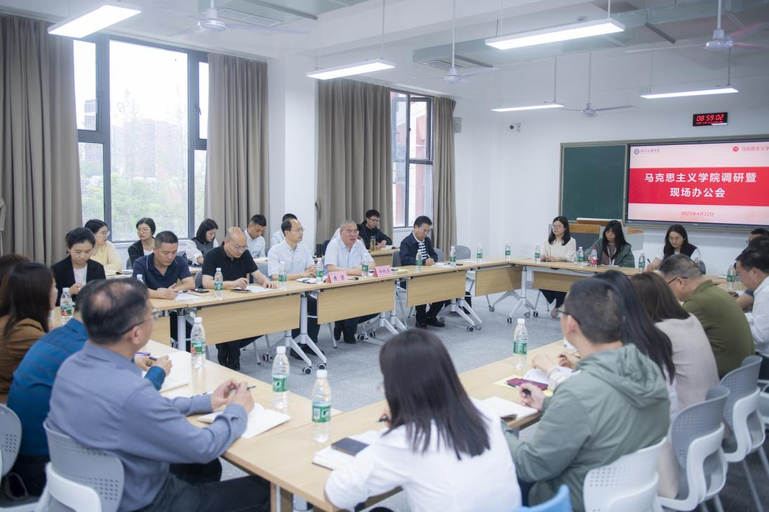 黄涛强调,taptap点点足彩要认真落实党中央、教育部、教育厅对于做好高校思想政治教育的精神和要求,紧紧围绕建好建优建强taptap点点足彩,谋深谋实新一轮发展。一要强化师资队伍建设。进一步加大高层次人才引进和培养力度,在对标加快扩容基础上,推进人才队伍在年龄结构、学历结构、专业结构、职称结构等方面的全面优化;二要提高思政课教学质量。深化教学改革,抓好备课磨课,在教材建设、课程改革、教学方法、教学手段、教学资源等方面重点发力,在教学比赛、教研教改等方面取得新突破。三要提升科学研究水平。发挥高层次人才的科研优势,开展有组织的科研活动,多出高质量科研成果。四要提升学生工作实效。加强思政课实践教学,推动“大思政课”与社会实践深度融合。思政教师要进驻一站式学生社区,引导学生厚植爱党爱国爱社会主义情怀。五要推进学科平台建设。加快推进大中小学思政课一体化建设,切实发挥共同体的辐射带动作用。强化马院与四川革命老区发展研究中心、川东北红色思政研究院等平台融合建设,为思政课教学改革提供学科支撑。六要强化服务保障工作。不断完善教学软硬件设施,优化塔石人才特区建设,为老师们创造优良教学环境。