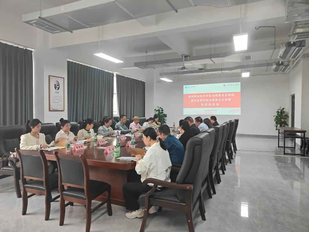 黄占波从“政治建院、人才强院、教学立院、科研强院、特色亮院”五个方面简要介绍了达州职业技术学院taptap点点足彩的建设情况。重点就党建引领、思政课教师队伍培养、思政课教学竞赛、有组织开展科研和组织理论宣讲等方面进行介绍。表示希望通过双方深入交流,解决发展过程中存在的问题和困难。