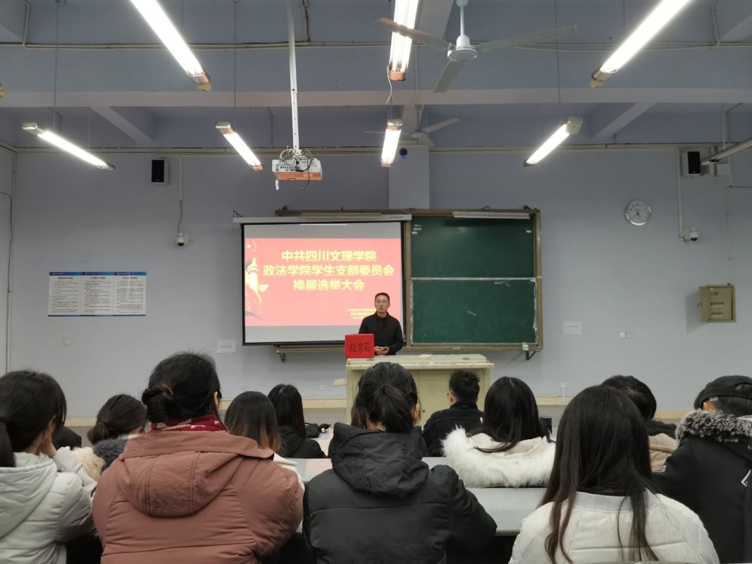 12月12日下午,政法学院学生支部委员会换届选举大会在博文楼523教室召开。此次支部委员会换届选举大会由党总支副书记吴辉兵主持,学工办主任唐幸福、辅导员曾亚出席,学生党支部全体党员参加会议,入党积极分子列席会议。