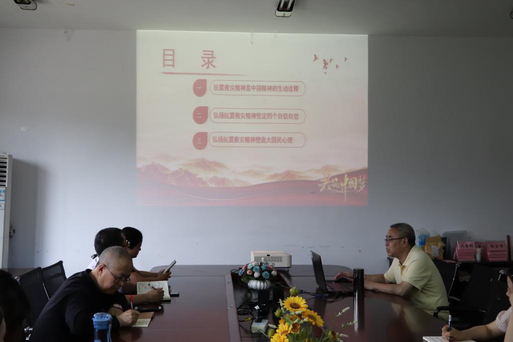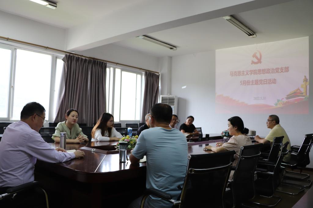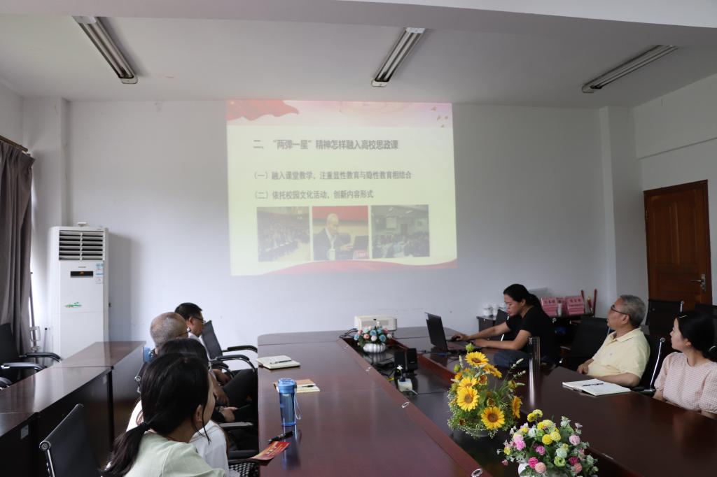5月31日下午,taptap点点足彩思想政治党支部在611会议室开展了“两弹一星”精神和抗震救灾精神融入思政课主题党日活动,活动由支部书记张善喜主持,支部9位同志参加活动。本次主题党日活动采取微党课的形式,汤海生和王小兰同志各讲了一节微党课。
