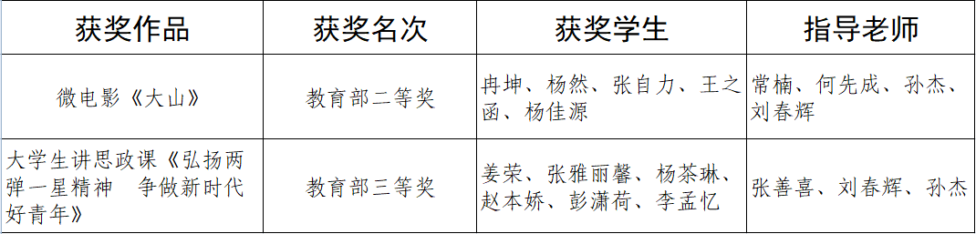 taptap原创微电影《大山》、大学生讲思政课《弘扬两弹一星精神 争做新时代好青年》分别获教育部二等奖和三等奖