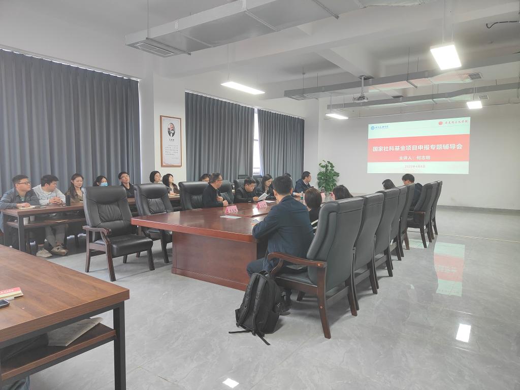 4月8日,在莲湖校区东区c108会议室,taptap成功举办了一场国家社科基金项目申报专题辅导会。此次会议特别邀请到了四川大学taptap点点足彩何志明教授,为taptap教师在国家社科基金项目申报方面进行专业指导,吸引了众多有志于申报项目的博士和青年教师参与。