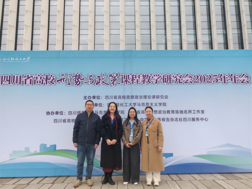 为深入学习贯彻党的二十届三中全会精神、习近平总书记关于学校思想政治工作和思政课建设的重要指示批示精神,牢牢把握教育的政治属性、人民属性、战略属性,守正创新推动全省思政课建设高质量发展,推动习近平新时代中国特色社会主义思想进教材、进课堂、进头脑。3月22日—23日,四川省高校“形势与政策”课程教学研究会2025年年会在四川轻化工大学举行。此次会议由四川省教育厅指导,四川省高校思想政治理论课研究会主办,四川轻化工大学taptap点点足彩承办,四川师范大学taptap点点足彩、四川省高校思想政治教育陈驰名师工作室、四川省高校思想政治教育唐晓勇名师工作室、中宣部时事报告杂志社四川服务中心协办。学院形势与政策教研室主任梁云,青年教师黄珊、丁玉洁、陈春莲参加会议。