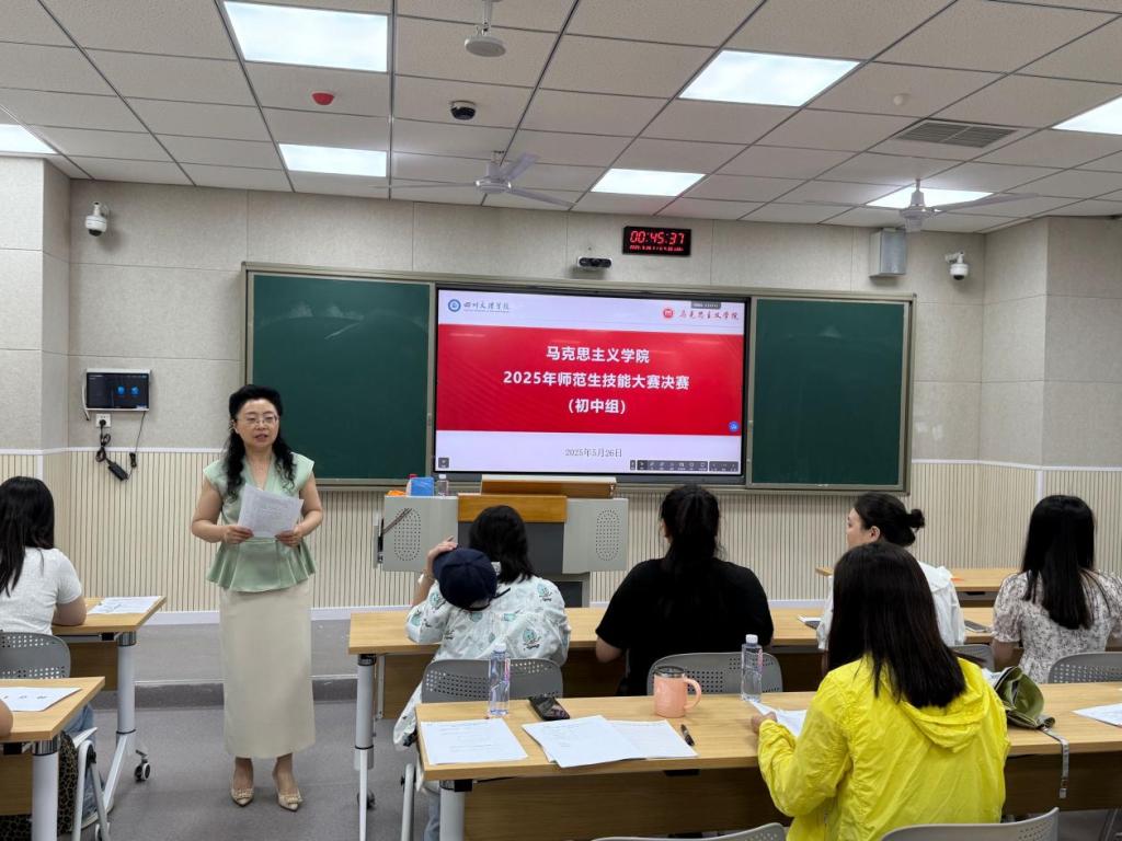 为进一步提升师范生的综合教育素质和教学技能,搭建“以赛促教,以赛促学,以赛促改”的教学交流平台,5月26日、27日,学院在东区B202智慧教室分别开展了2025年师范生教学能力大赛初中组和高中组的决赛。来自思想政治教育专业大一至大三年级的19名选手经初赛选拔进入到决赛的最终角逐中。